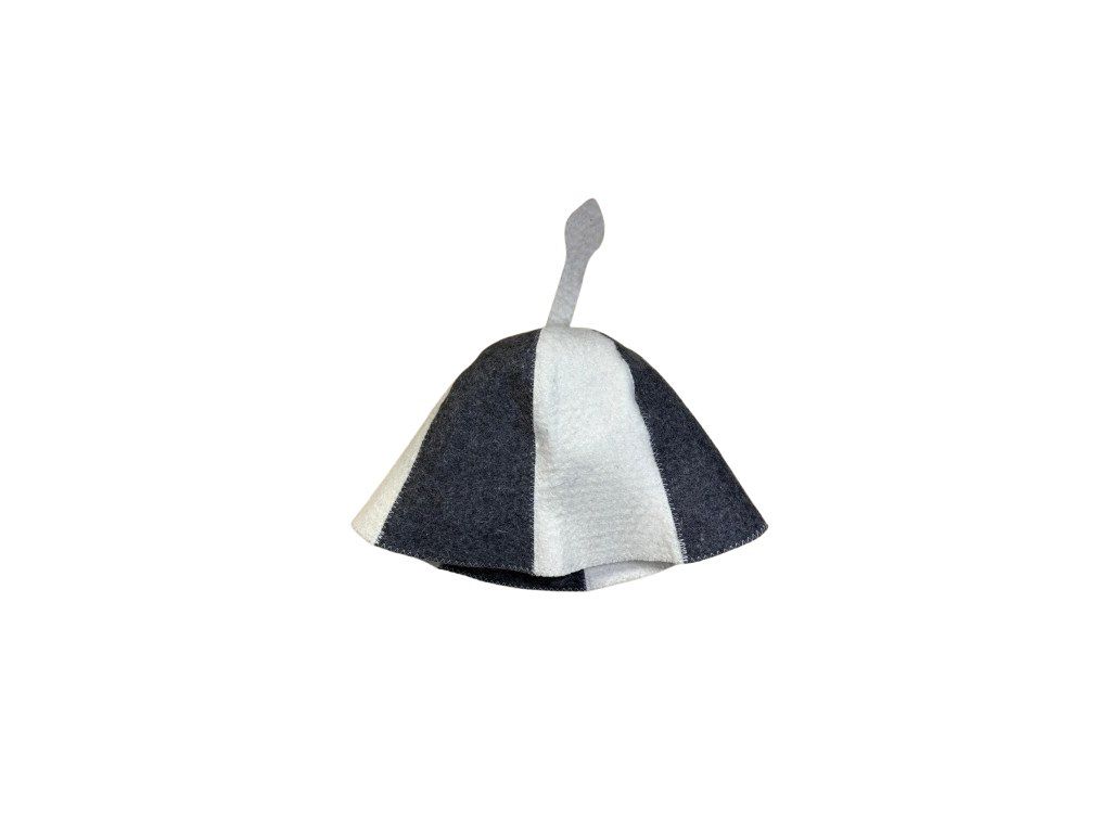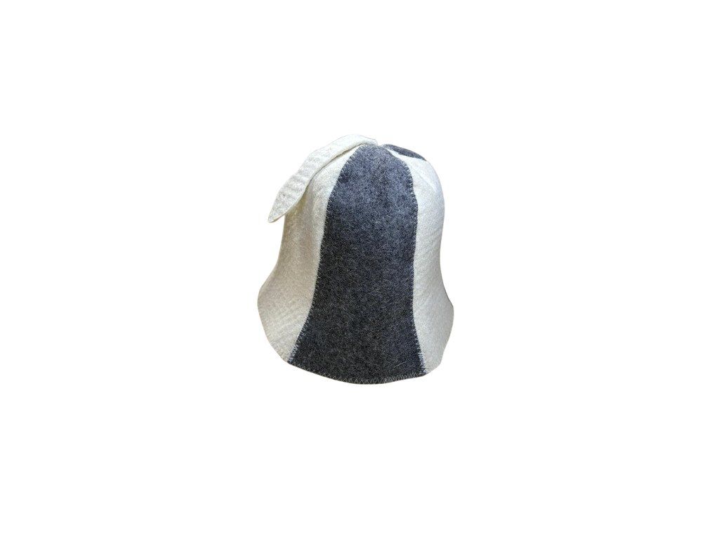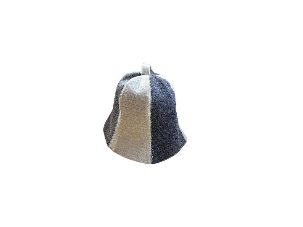 Kvalitní klobouk do sauny dvojbarevný v šedobílé barvě je vyroben ze směsi vlny a polyesteru.