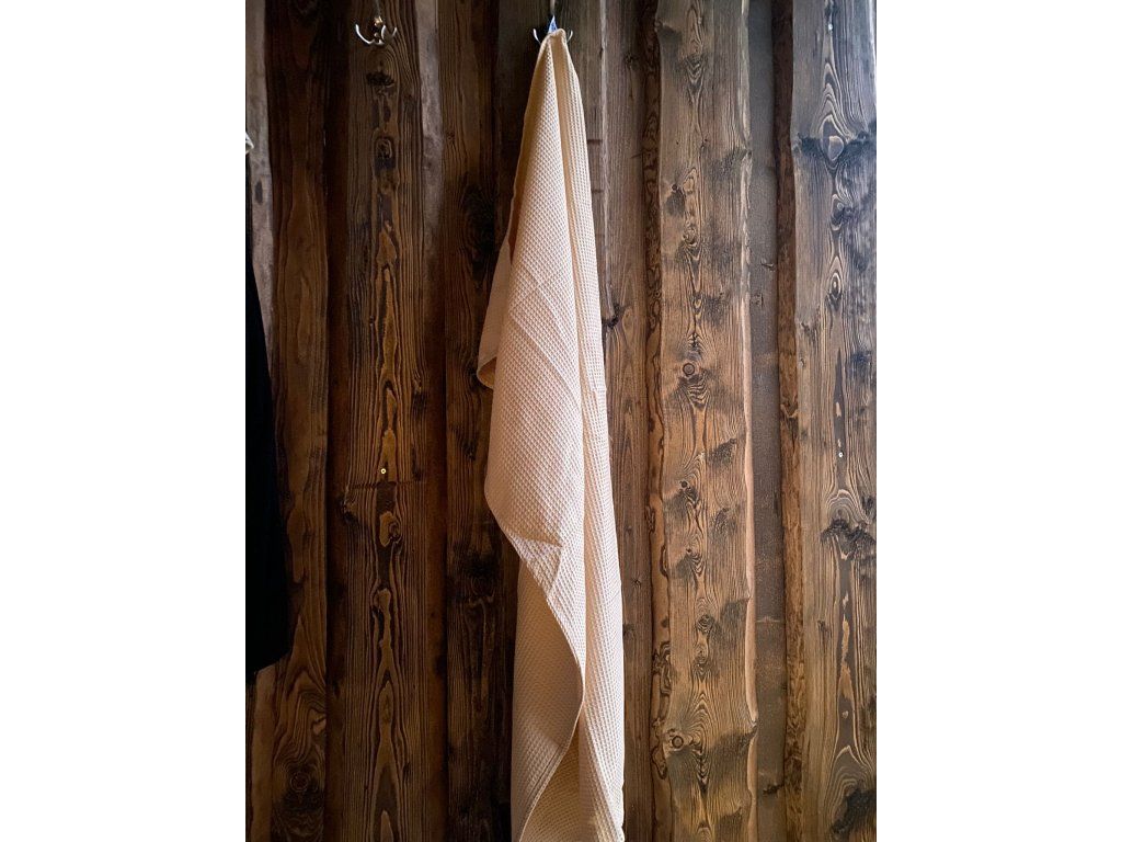 Lehký ručník / osuška do sauny s vaflovým vzorem.