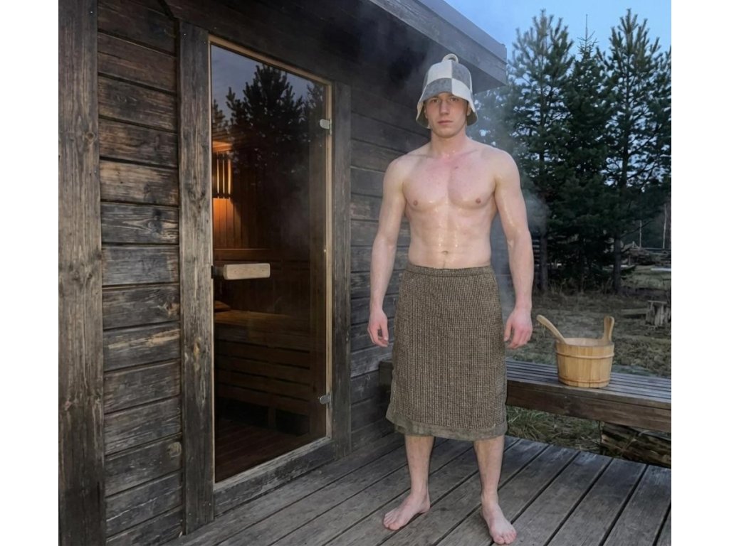 Zavinovací kilt, ručník do sauny je pohodlným a neformálním doplňkem pro saunování.