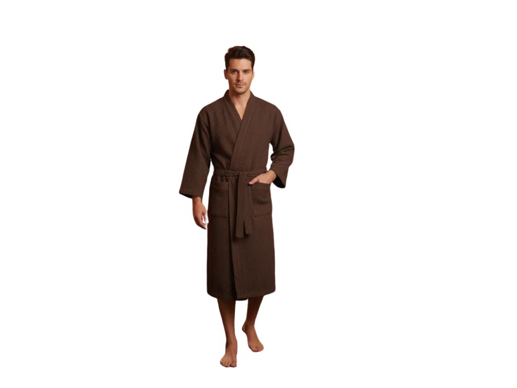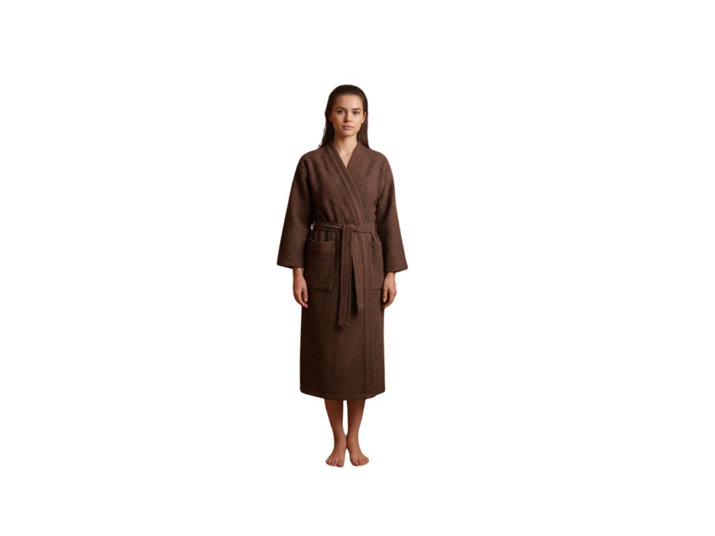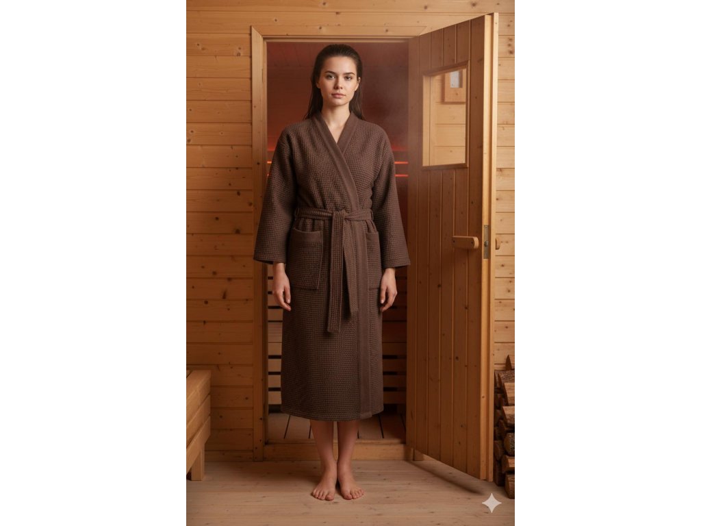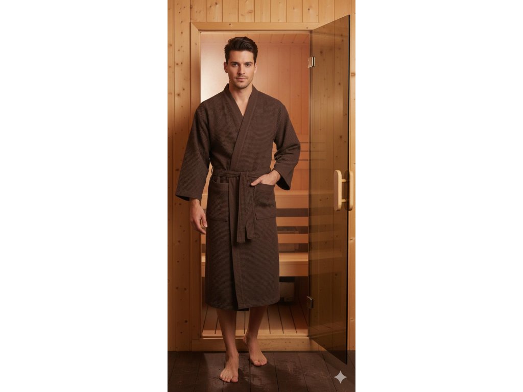 Župan do sauny Rento tmavě hnědý je vyroben z velmi příjemného a lehkého materiálu, který má skvělé absorpční schopnosti.